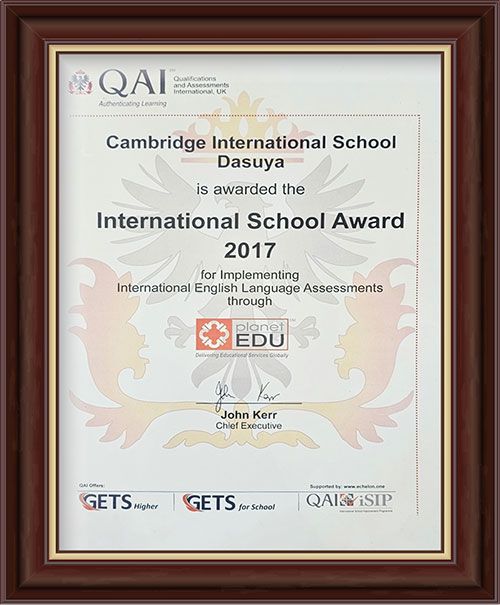Cambridge International School, Dasuya received this award for implementing International English Language Assessments through Planet EDU, reinforcing its commitment to global academic standards, inculcating a sense of belonging as global citizens.