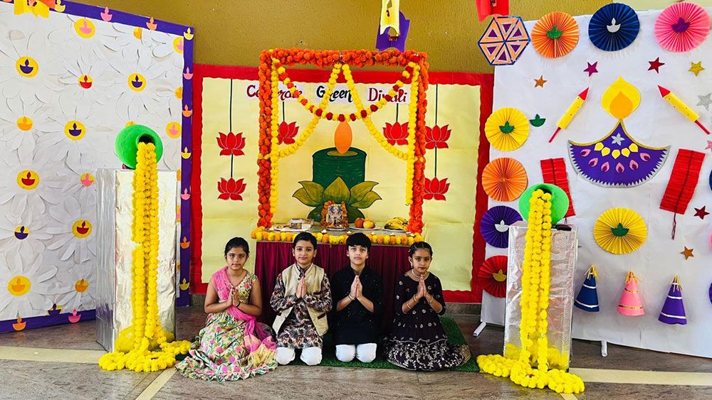 The spirit of Diwali came alive as our Pre-Primary and Primary students celebrated the festival with immense joy and creativity. Dressed in vibrant traditional attire, the young learners participated in engaging activities like diya decoration, rangoli making and Diwali-themed crafts. The celebration beautifully captured the essence of light, happiness and togetherness.